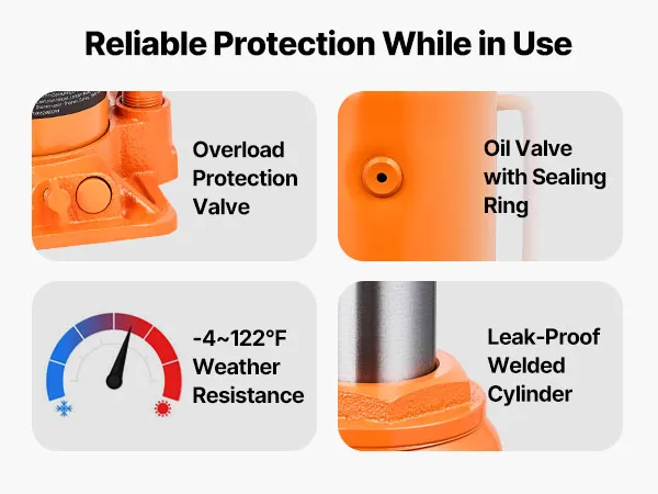 Safe & Leak-Free: The small bottle jack is made from durable materials with a solid saddle that stays steady. The built-in valve helps avoid overloads, and the welded body with rubber-sealed oil port means no messy leaks over time