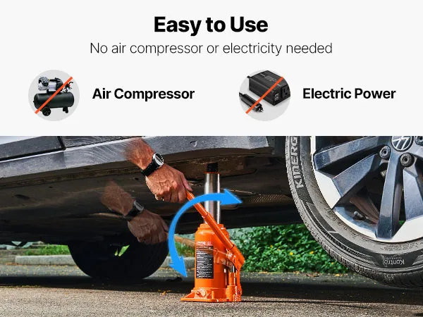 Compact & Portable: Compact and lightweight, this heavy duty jack fits easily in your trunk or garage. Ready to work anytime, anywhere—no compressor or electricity required