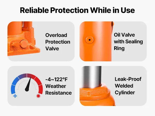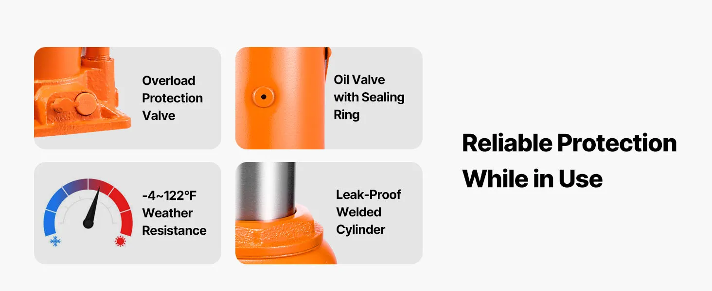 Safe & Leak-Free: The small bottle jack is made from durable materials with a solid saddle that stays steady. The built-in valve helps avoid overloads, and the welded body with rubber-sealed oil port means no messy leaks over time