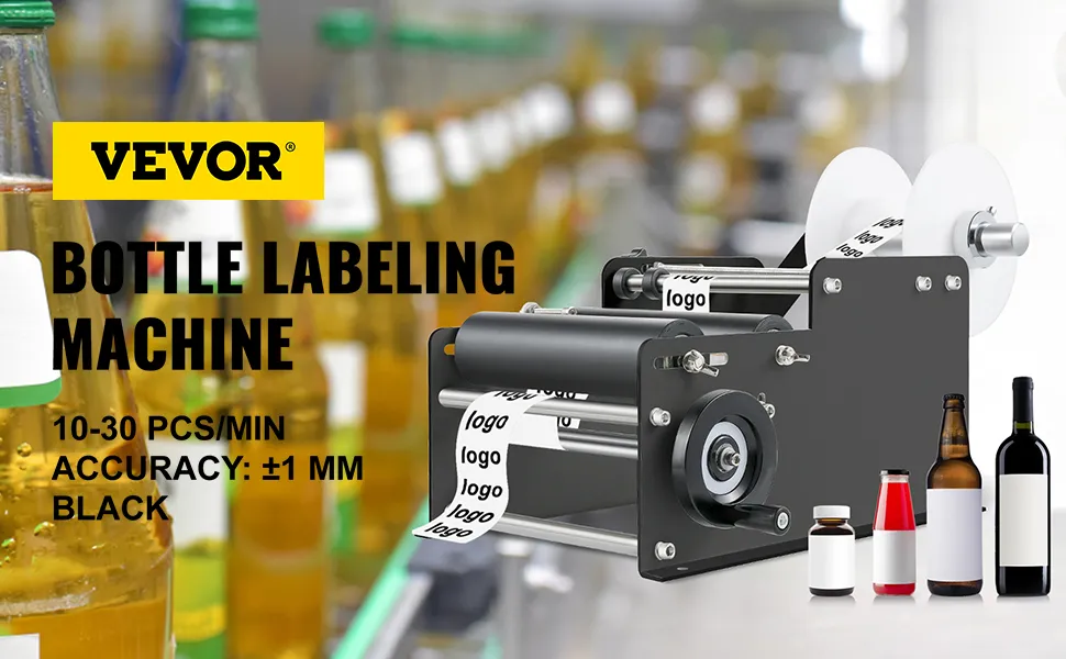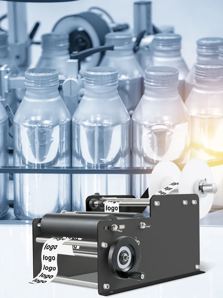 This hand labeling machine features a desktop design and compact structure. It is applied for standard round bottles like PET bottles, plastic bottles, glass bottles, metal bottles, excluding irregular-shaped bottles.