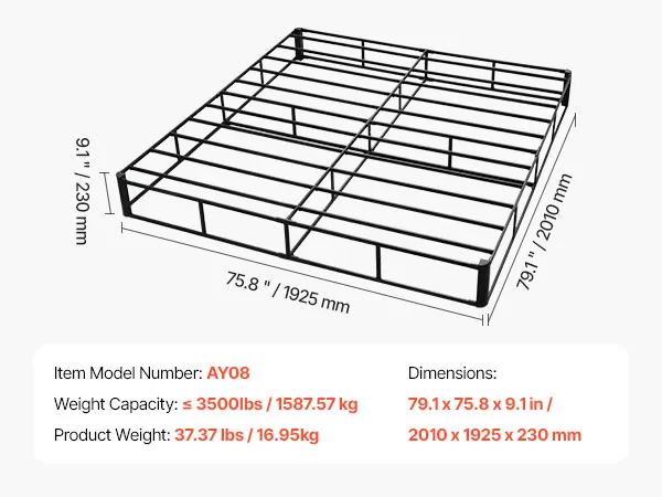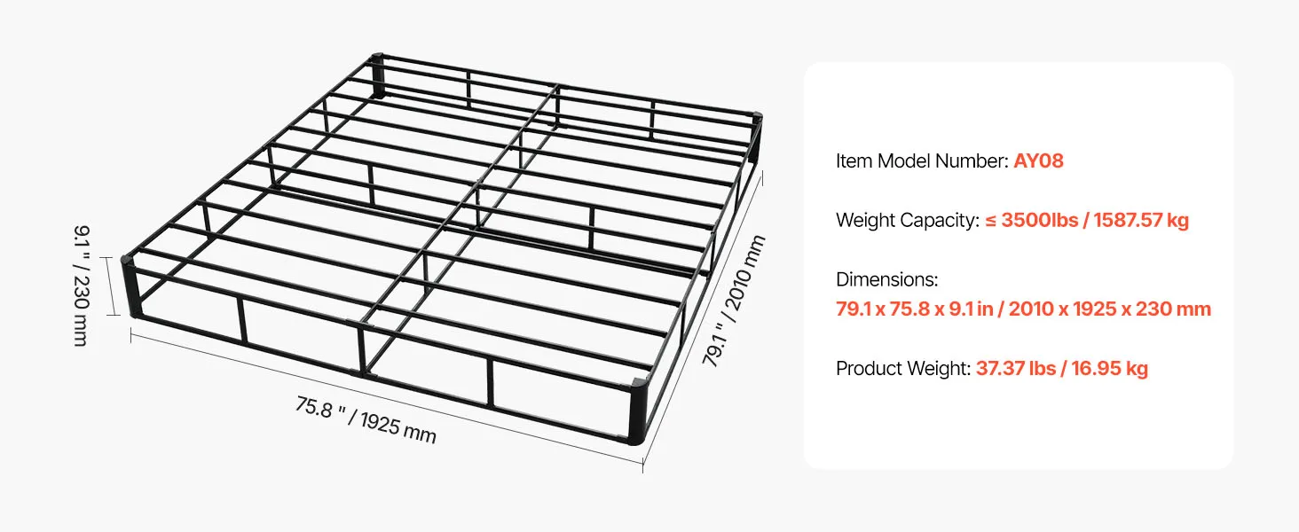Sturdy, Stable, and Durable: Constructed with a thick and solid steel frame, our box spring supports up to 3500lbs / 1587.57 kg, providing excellent support for your sleep. The thickened design ensures long-lasting durability.