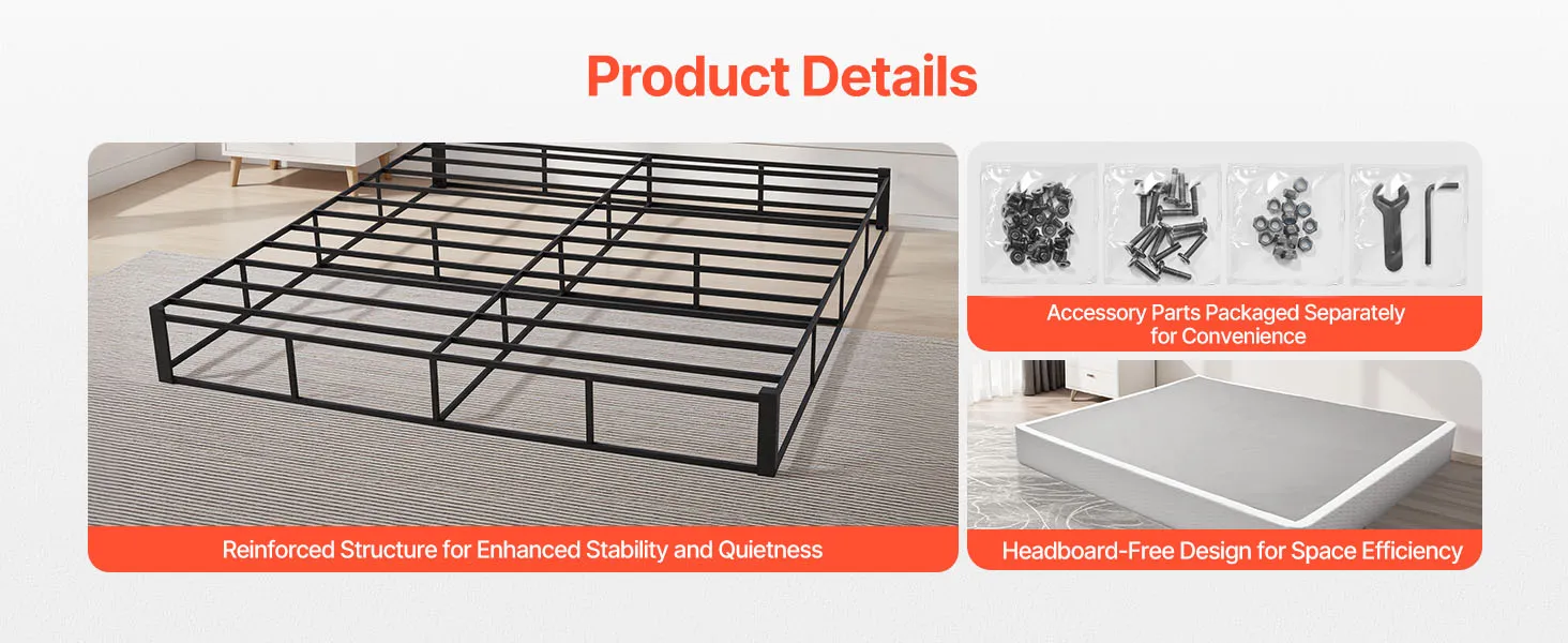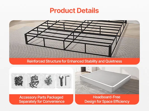 Made from thickened metal material, our bed box provides stable support without wobbling, bending, or sagging, unlike thinner frames.