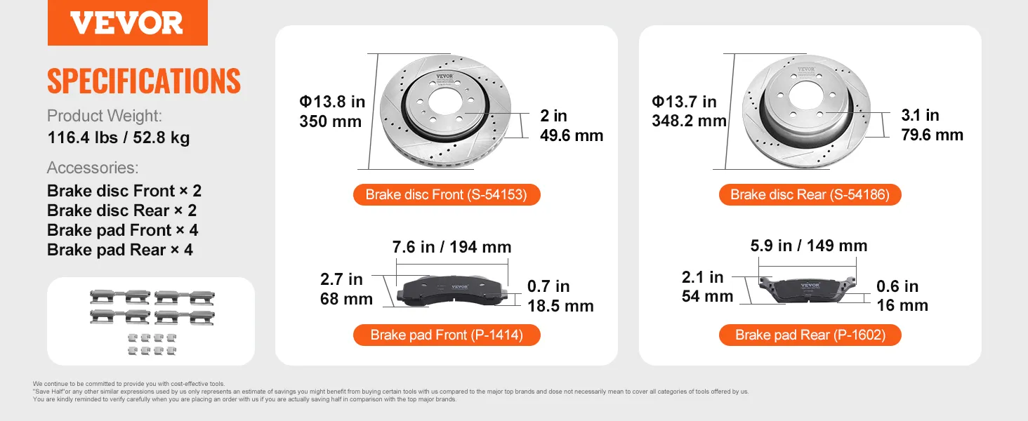 Every front and rear brake kit undergoes rigorous dynamic balancing procedures. This ensures high-speed stability and responsive braking. The balanced design reduces abnormal vibrations and wear. It is essential for maintaining the vehicle's safety and performance. Also, it enhances the driving experience, especially at high speeds. Responsive braking is necessary for emergency stops. Peace of mind: For ford F-150 owners, there’s peace of mind when dealing with emergency stoppages. Strict specification control ensures that the brake kit meets the highest standards of quality and performs well.