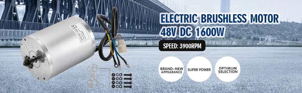 Electric Brushless Motor 48V DC 1600W Electric Bike Motor 3900 RPM