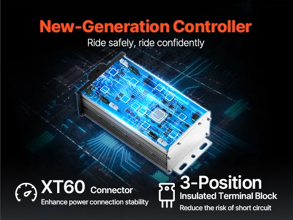Upgrade to our new-generation controller and ride safely. Featuring an XT60 connector, it enhances power connection stability for reliable performance. The 3-position insulated terminal block reduces the risk of short circuits, adding an extra layer of safety to your journey.