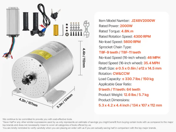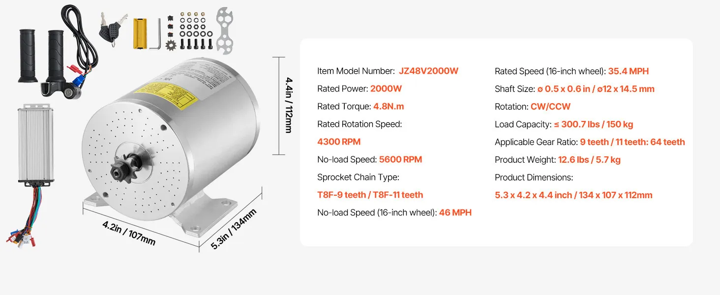 Easy DIY Installation: Package includes: 1 x 48V 2000W Brushless Motor, 1 x Motor Controller, 1 x Twistgrip Throttle, 1 x Set of Assembly Hardware, and 1 x User Manual. This motor kit comes with detailed wiring diagram instruction, ideal for DIY enthusiasts and hobbyists looking to upgrade or build custom electric vehicles.