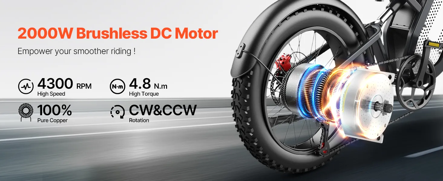 Upgrade your ride with confidence and experience enhanced power, reliability, and enjoyment with the 2000W 48V brushless DC motor kit, upgraded controller, 4.8N.m rated torque, and CW & CCW dual-direction control. Effortlessly conquer uphill climbs and navigate challenging terrains with ease.