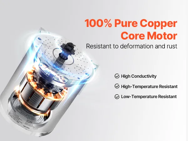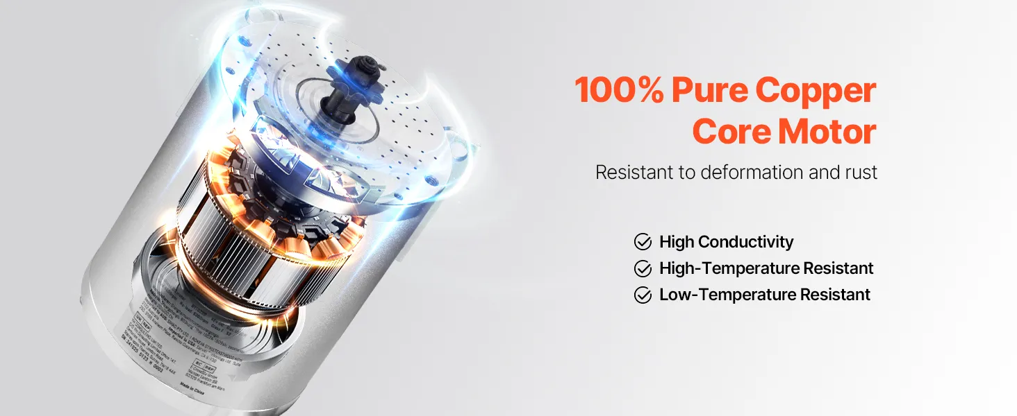 Quiet, Reliable, and Versatile Operation: 100% Copper Core Motor for excellent heat and cold resistance, ensuring stable performance in extreme weather conditions. With a low noise level of 70 dB, this motor offers quiet operation. It also features CW & CCW dual-direction control, enabling easy switching between forward and reverse for added versatility in tight spaces.