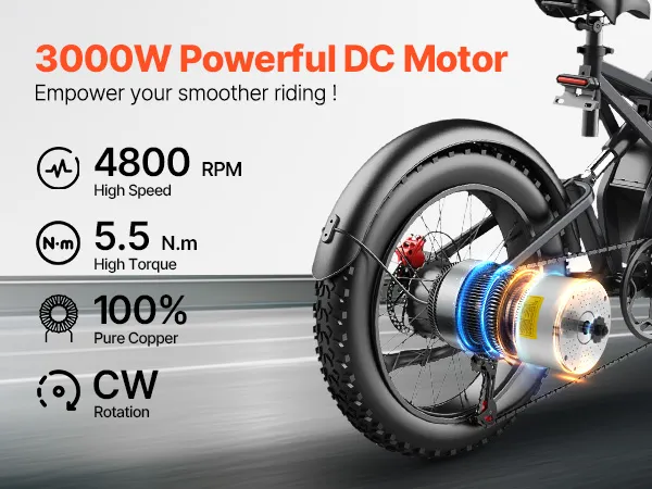 Upgrade your ride with confidence and experience enhanced power, reliability, and enjoyment with the 60V 3000W brushless DC motor, impressive 5.5 N.m rated torque, high speed, and CW direction control. Effortlessly conquer uphill climbs and navigate challenging terrains with ease.