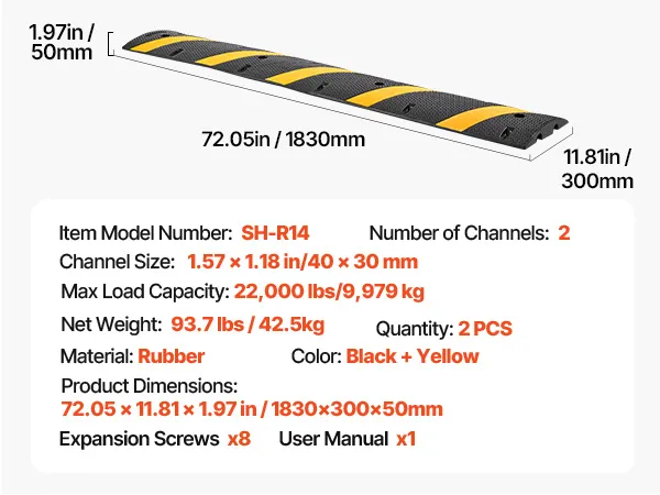 Built from tough, wear-resistant rubber, this cable protector ramp stands up to 22,000 lbs/axle, keeping your cables secure even during peak traffic hours. dual-channel design lets you run two separate cables without tangling, while the expansion screws avoid shifting under heavy truck loads.