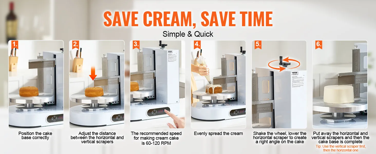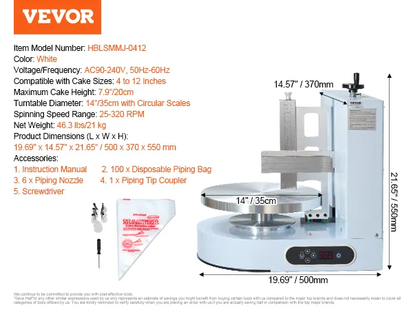 Mute and Easy to Clean: Quality technology effectively reduces noise, guaranteeing smooth cake piping. The aluminium alloy turntable and sus304 scraper with scale are clean and rust-free. The leakage protection plug can power off within 0.01 seconds for ultimate security.