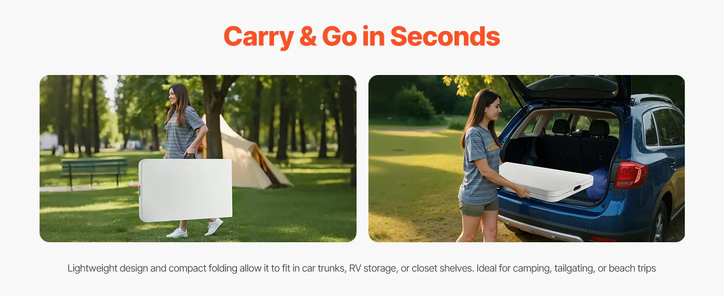 Wide Application: This utility table is ideal for outdoor picnic table, BBQ prep station, or family game night desk. Suitable for camping trips, beach outings, backyard parties, and more