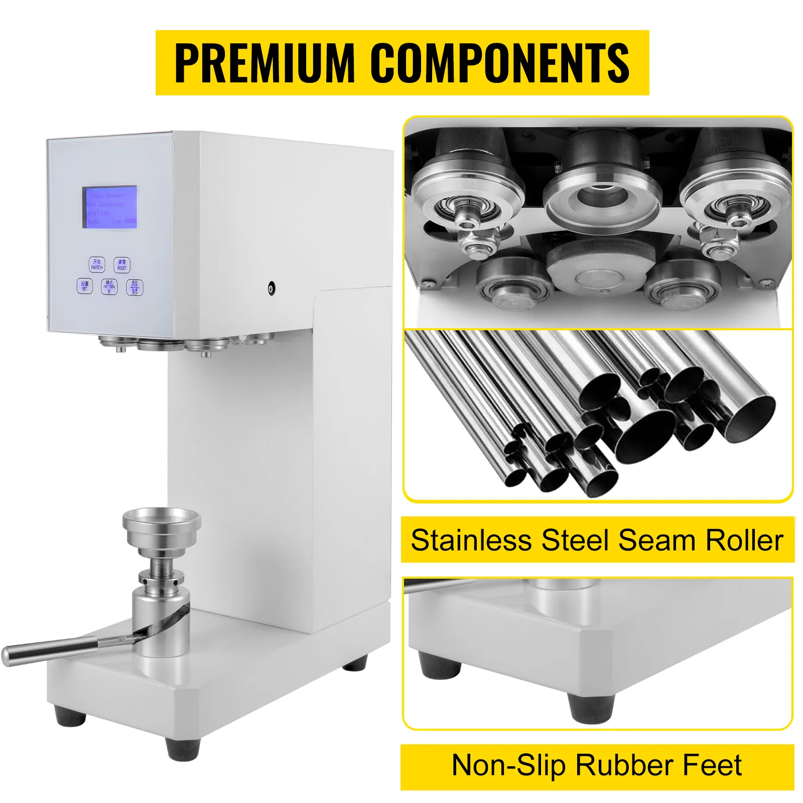 The can sealing machine features convenient operation through a power switch and an automatic switch to finish sealing the cans. A pure copper motor improves efficiency.