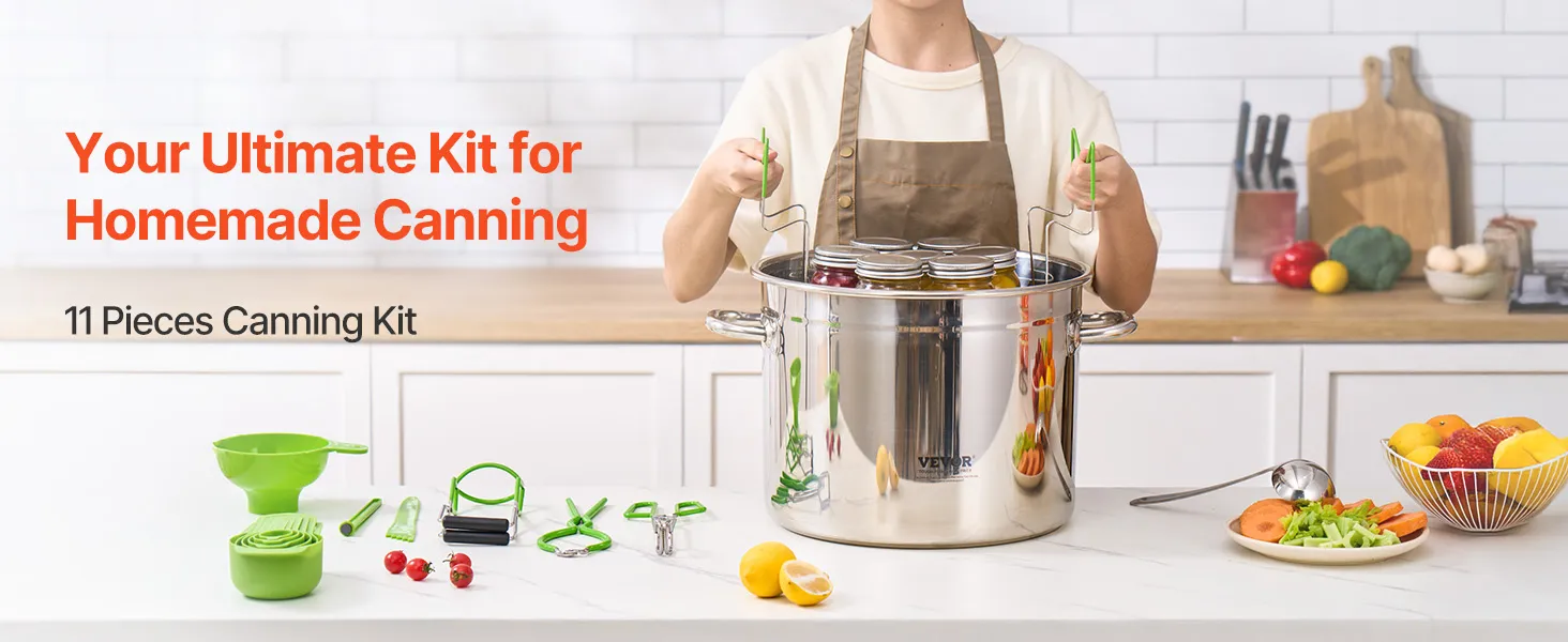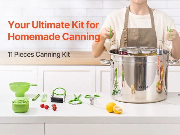 VEVOR Canning Supplies Starter Kit, 11 Pieces Stainless Steel Water Bath Canning Kit for Beginners, Canning Tools Set: Pot, Rack, Lid, Ladle, Funnel, Tongs, Jar Lifter, Wrench, Measuring Cup VEVOR Canning Supplies Starter Kit, 11 Pieces Stainless Steel Water Bath Canning Kit for Beginners, Canning Tools Set: Pot, Rack, Lid, Ladle, Funnel, Tongs, Jar Lifter, Wrench, Measuring Cup