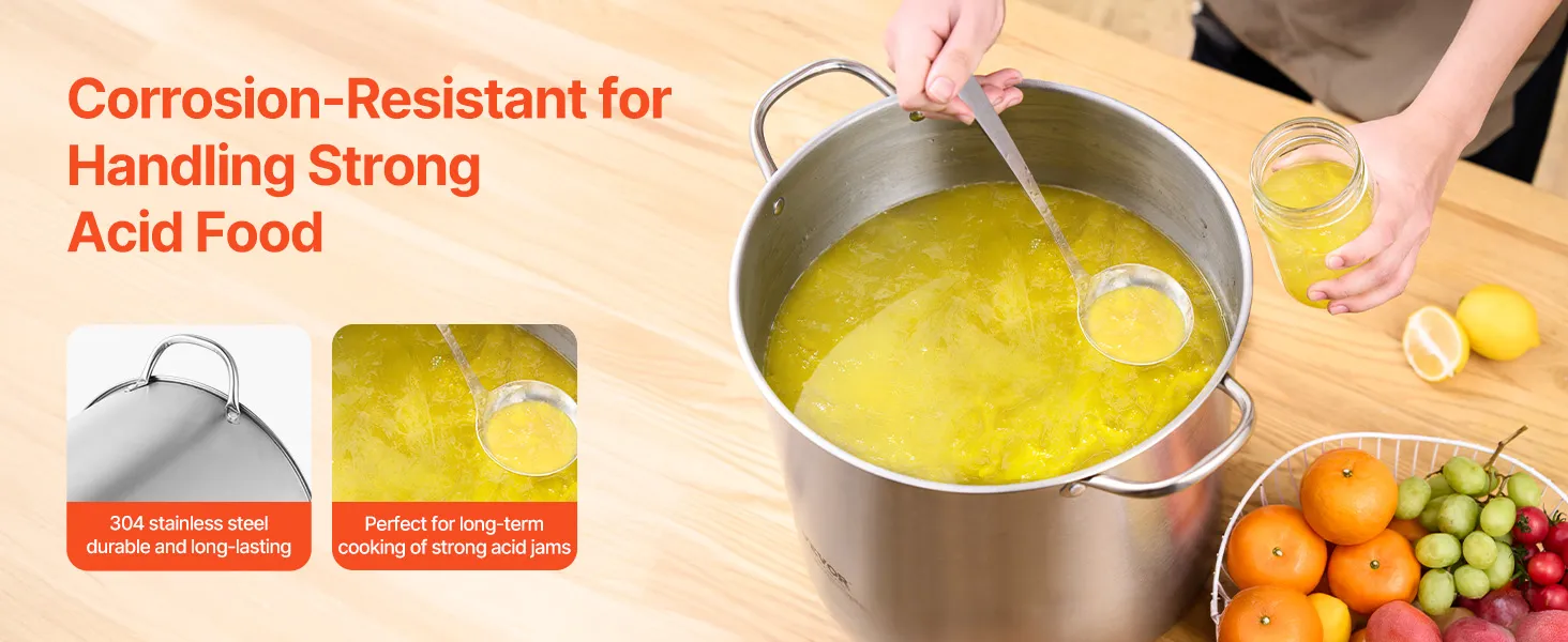 Built to last, this canning supplies set is durable and resistant to deformation or damage even after long-term use. Not only is it great for making jams, but it can also be used for stewing and other cooking methods.