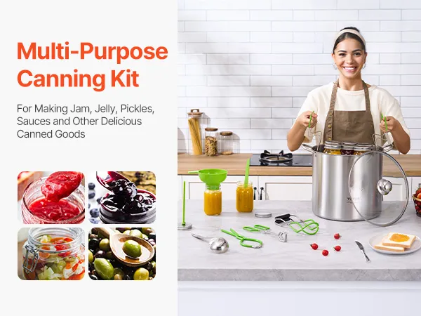 Multi-purpose: This canning kit is ideal for making jam, strawberry jam, fruit preserves, blueberry jam, cranberry jam, and more. Canning is not just a practical activity, but a lifestyle that allows you to easily create delicious food at home