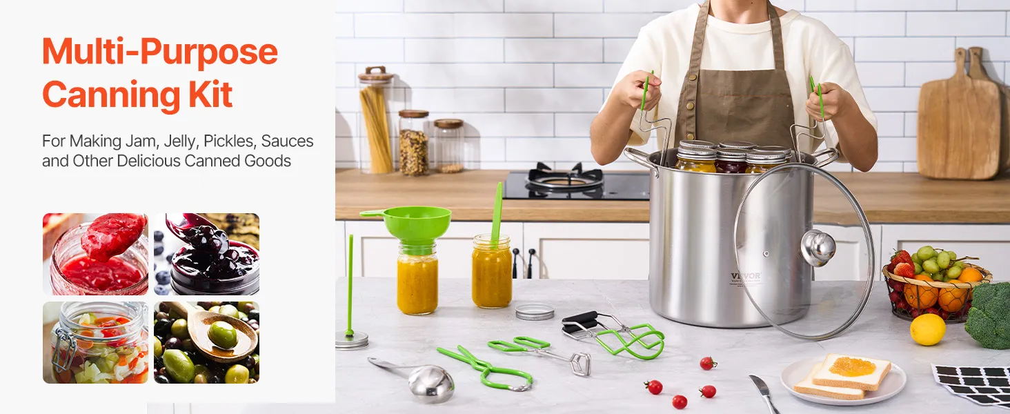 Durable and Long-lasting: Made from high-quality stainless steel with a silicone protective coating, this canning starter kit is non-slip, heat-resistant, and corrosion-resistant. It withstands daily wear and tear, ensuring a long lifespan
