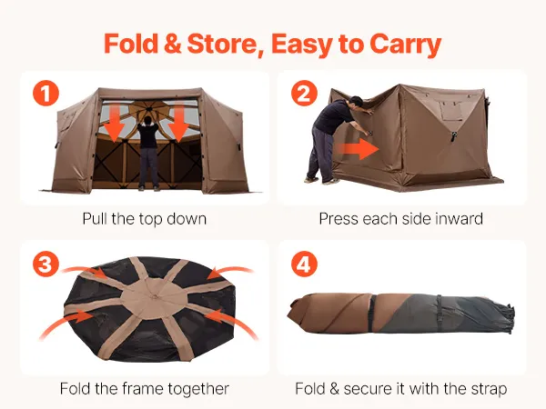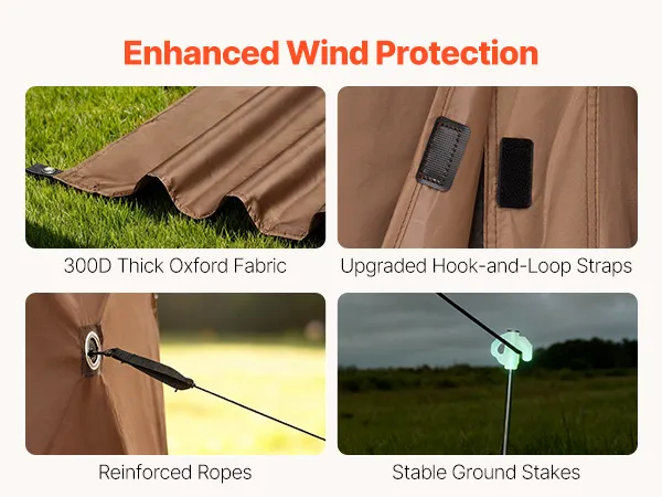 360° Ventilation: Mesh sidewalls and roof allow airflow while keeping critters out. Two roll-up wind panels with ventilation windows maintain air circulation even when fully closed. The canopy shelter tent provides a comfortable for adults
