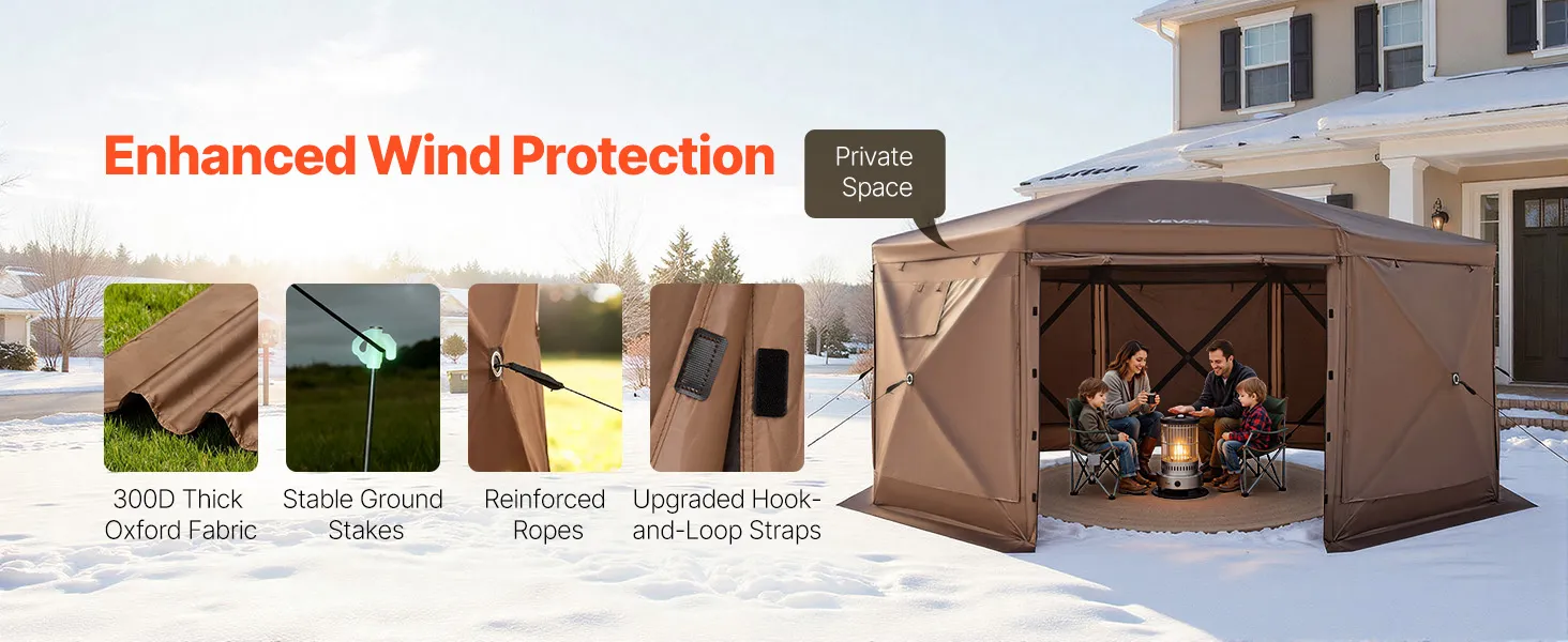 Easily raise or lower side panels. Upgraded reinforced hook-and-loop fastener keeps panels secure even in strong winds.