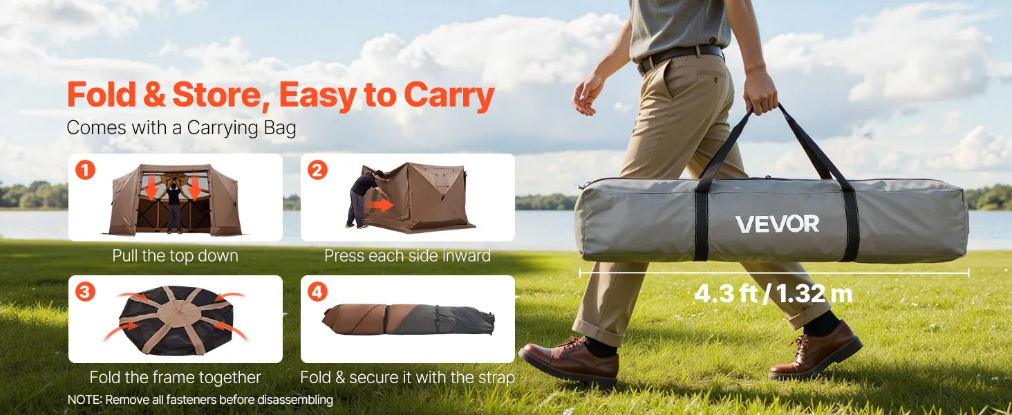 Quick Setup & Easy Storage: The canopy screen tent comes with pop-up hub design that requires no tools for fast assembly. Folds compactly into a 4.3 ft / 1.32 m carry bag, easy to store in SUV or RV trunks