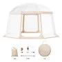 12 x 12 ft Waterproof & Cold-Resistant Tent: Our sports tent is made with cold-resistant PVC plastic, designed to keep you cozy while providing a crystal-clear view. Thanks to its tear-proof material and heat-sealed seams, no need to worry about leaks—even in snowy conditions. With a roomy eight-sided design and two windows, you'll have plenty of space to enjoy the outdoors.