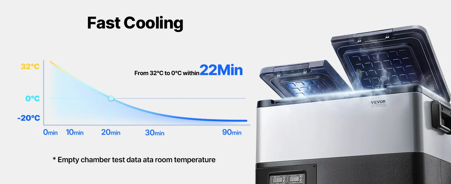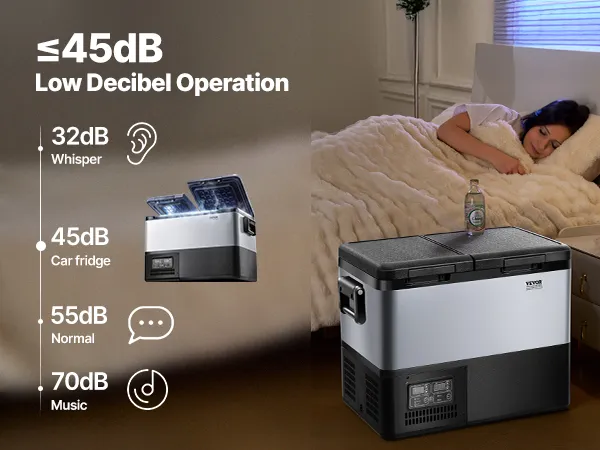22-Minute Fast Cooling: Featuring compressor cooling technology, this car fridge can reduce the temperature from 32℃ to 0℃ in just 22 minutes when empty, providing rapid cooling. The refrigerator operates at a noise level ≤ 45dB, ensuring a peaceful sleep after long hours of driving.