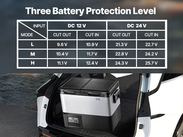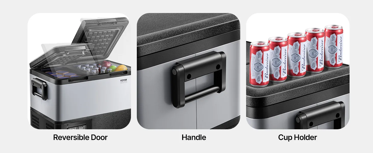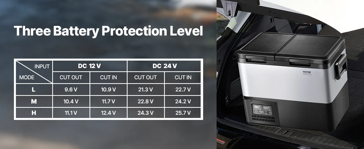 Dual Modes & Battery Protection: This car refrigerator has two modes: MAX mode (60W) and ECO mode (50W). It also features battery protection (with three levels available) to ensure the security and longevity of your vehicle’s battery. You can enjoy using the refrigerator on your trip without worrying about excessive battery consumption.