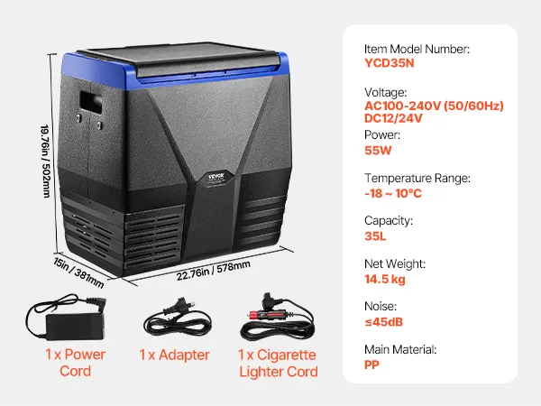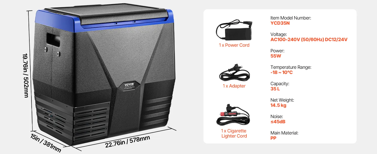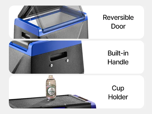 35L Car Refrigerator: The 35L portable refrigerator freezer can hold 54 cans of 330ml cola or 30 bottles of 550ml water or 9 bottles of 750ml red wine, accommodating seafood, snacks, meats, and beverages, meeting the needs of short trips such as travel, boating, and camping.