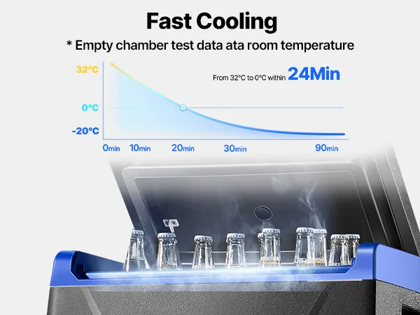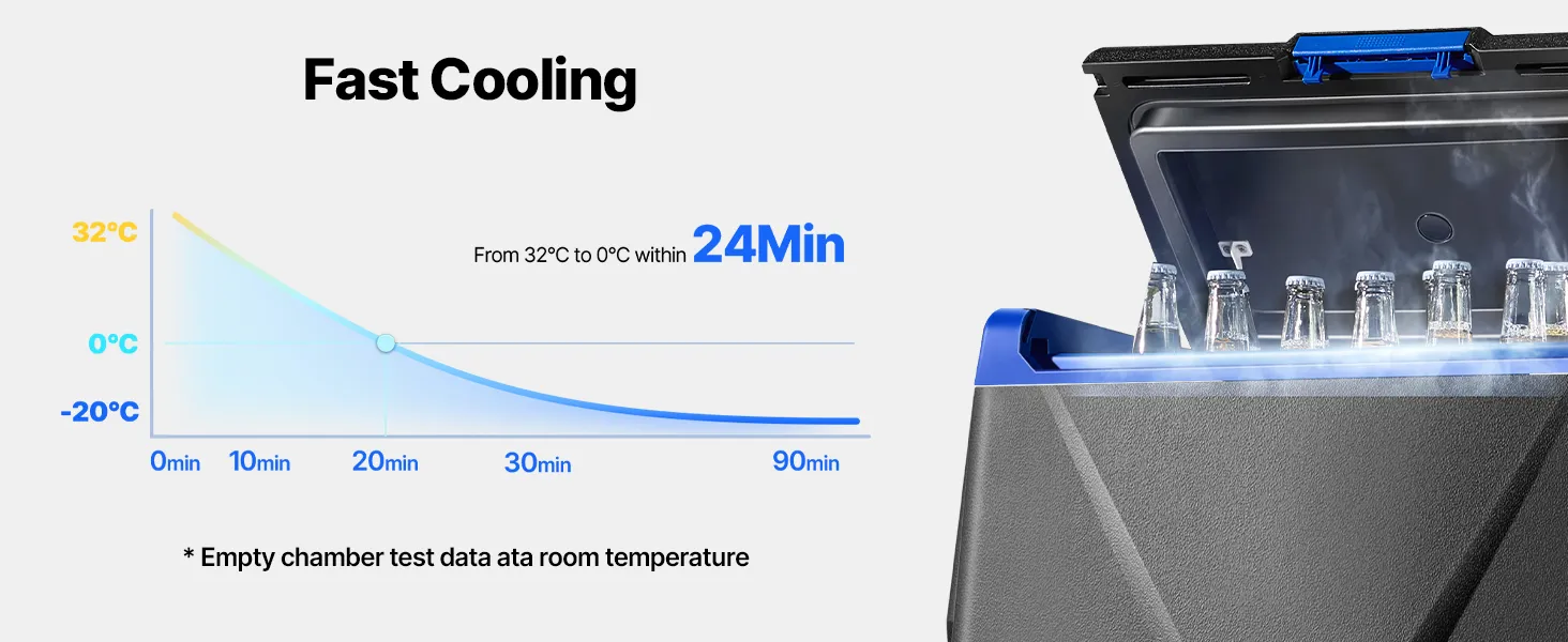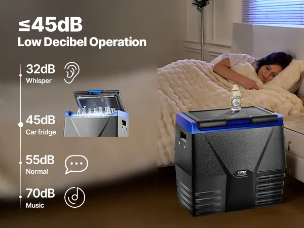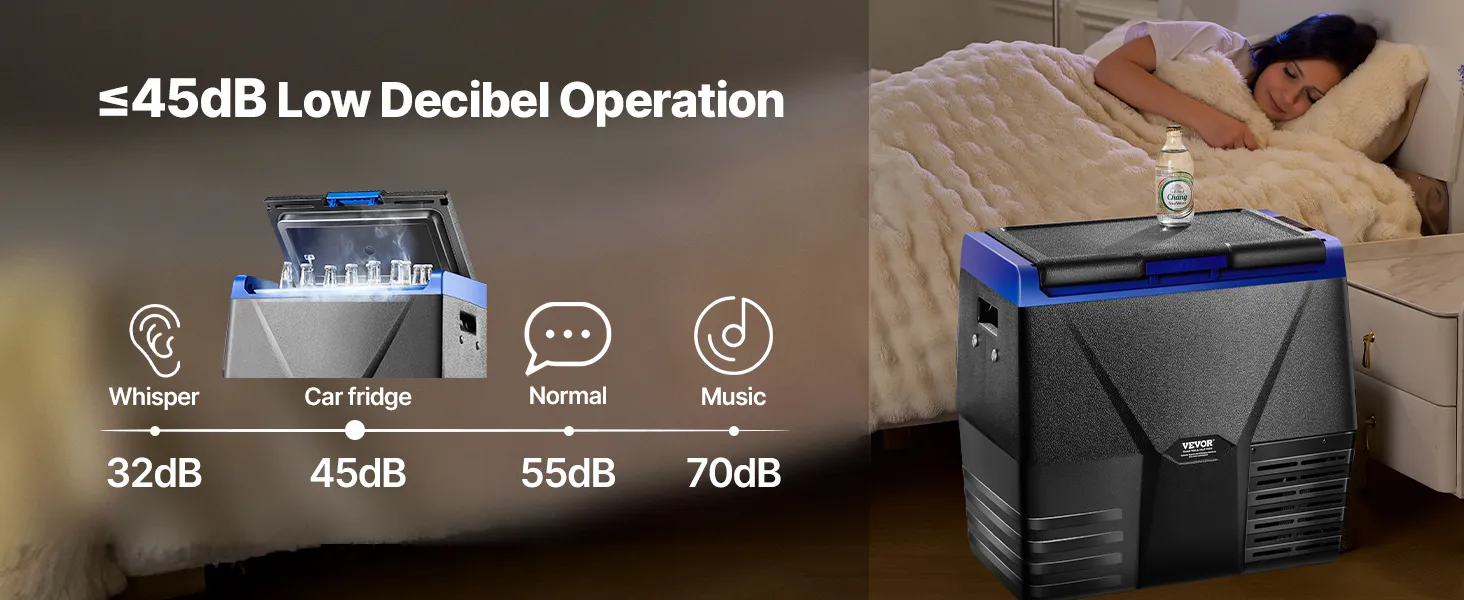 24min Rapid Cooling: This car fridge uses compressor cooling technology, quickly cooling down from 32℃ to 0℃ in 24 minutes under when empty. The fridge operates with noise ≤ 45dB, ensuring you sleep well after long drives.