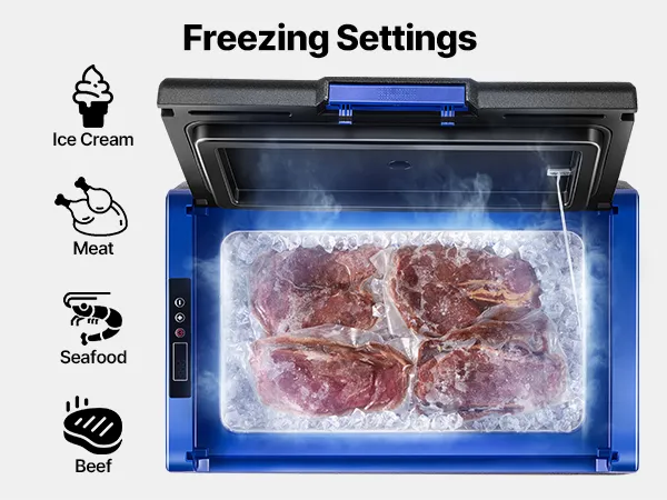 -18 ~ 10 ℃ Temperature Range: The car refrigerator features an expanded temperature range of -18℃ to 10℃, allowing for both freezing (-18℃ to 0℃) and refrigeration (0℃ to 10℃). You can easily adjust the temperature according to your food storage needs, ensuring the preservation and supply of food during your trip.