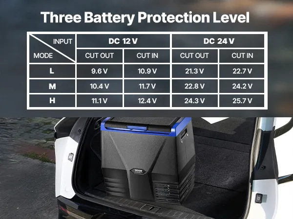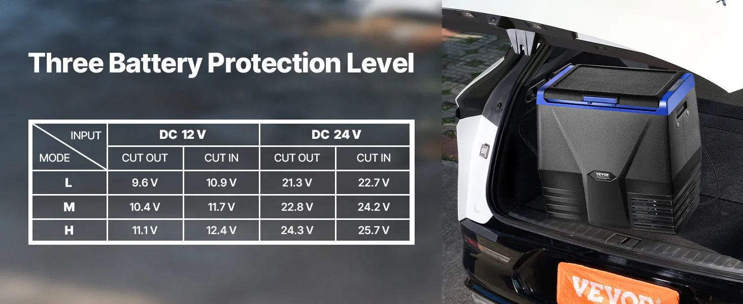 Energy Saving & Battery Protection: Battery protection (with three levels available) ensures the security and longevity of your vehicle’s battery. You can enjoy your journey with the portable car fridge without worrying about excessive battery drain.
