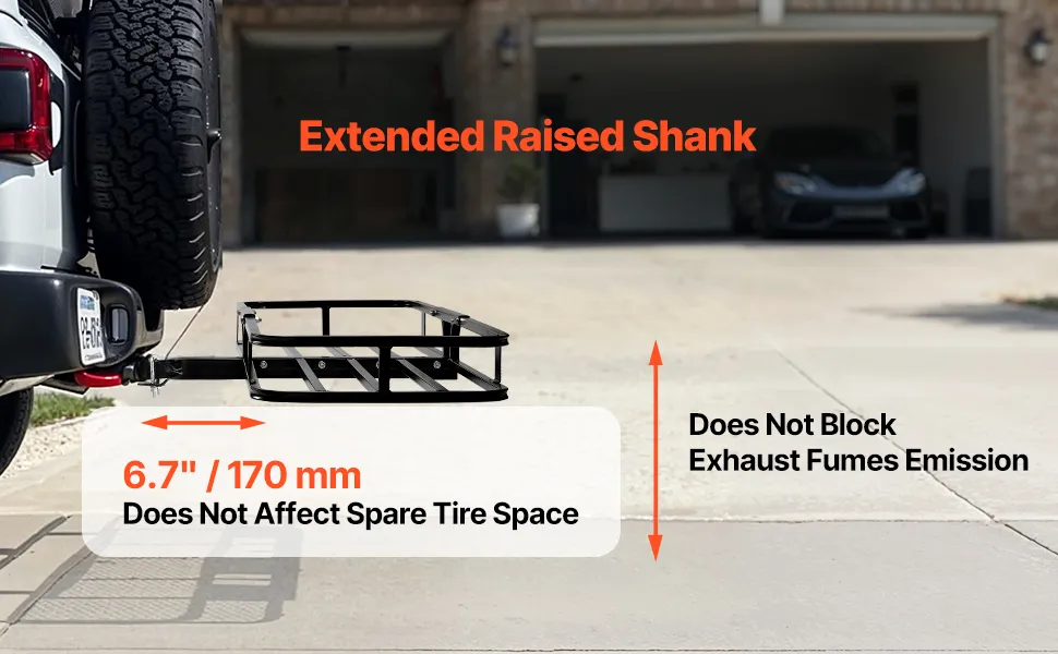 Our hitch cargo carrier’s connector support arm adopts a raised structure to keep the luggage frame away from the ground, which does not block the exhaust gas exclusion, and the items do not receive exhaust gas pollution.