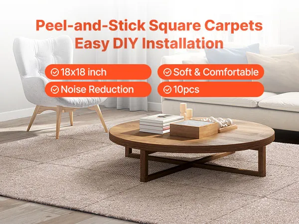 Quick Stick-On Backing: No additional adhesive needed, just peel off the backing and press to install. These peel and stick carpet tiles make setup fast and fatigue-free