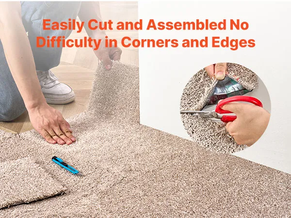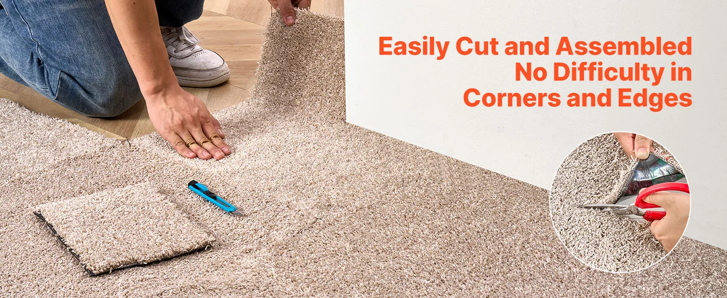 Each carpet tile can be freely cut to any shape or size, making it easy to cover irregular spaces and achieve full-room coverage without hassle.