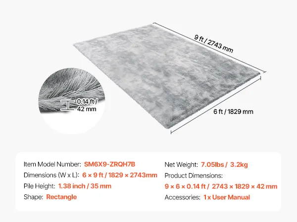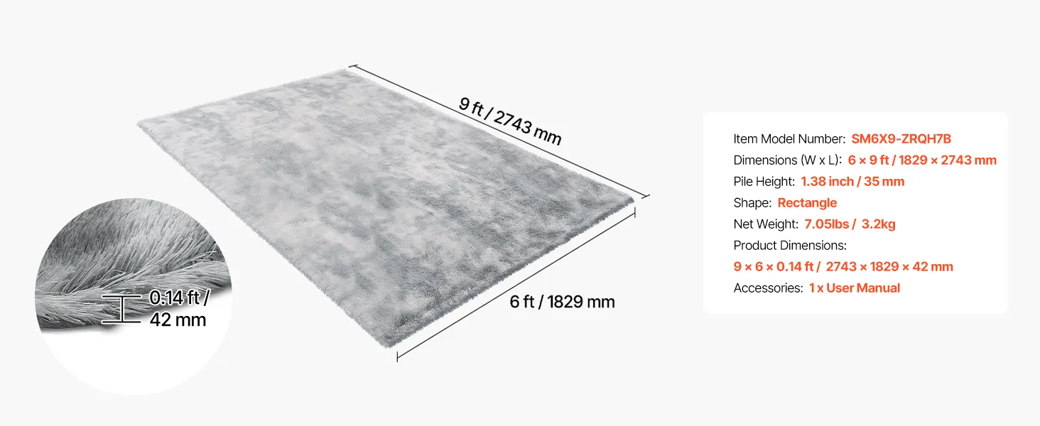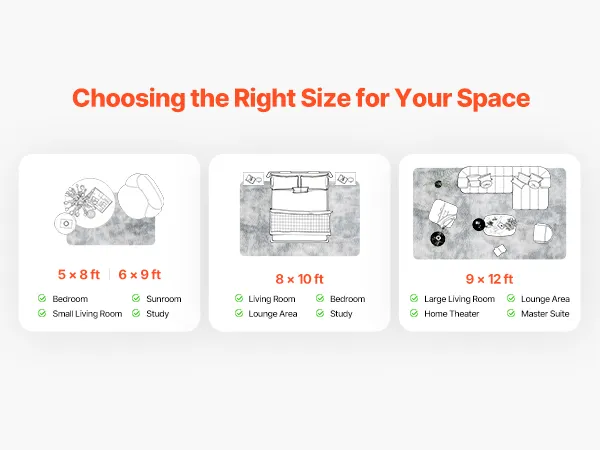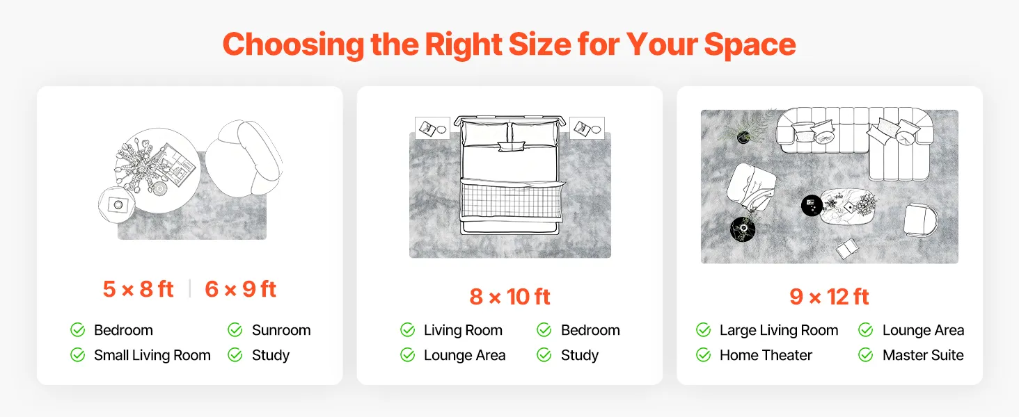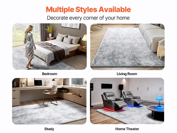 Multiple Size Options: Choose the fluffy living room rug that fits your space with sizes from medium 5 x 8 ft/1.52 x 2.44m and 6 x 9 ft/1.83 x 2.74m to large 8 x 10 ft/2.44 x 3.05m and extra-large 9 x 12 ft/2.74 x 3.66m. Whether for a cozy corner or a spacious room, these options provide flexibility to match different layouts in your home