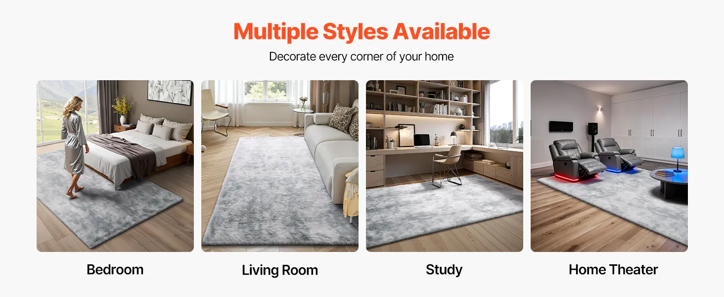 With a simple and elegant design, this VEVOR plush living room rug blends seamlessly into modern décor. Available in gray, mixed gray, ivory, and black, it enhances bedrooms, living rooms, studies, or sunrooms, offering a stylish touch that works across multiple spaces.