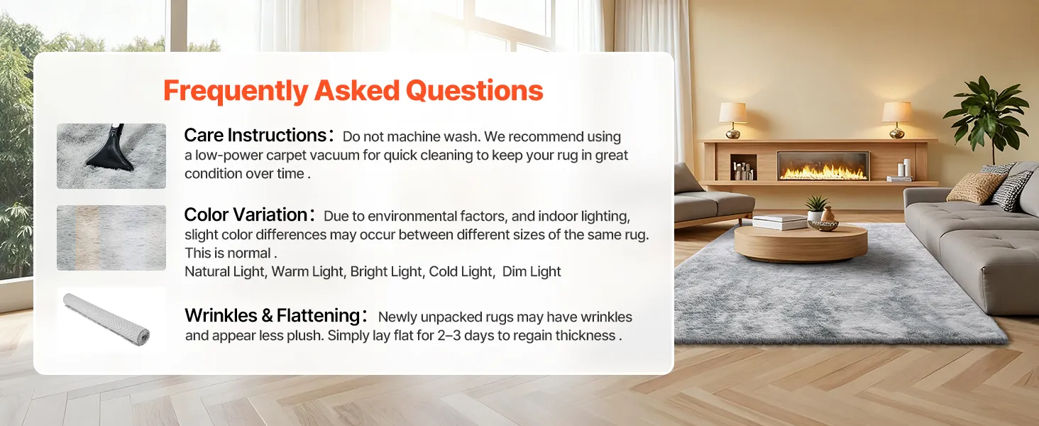 Kindly Reminder: Please note that the color of this area rug fluffy may vary slightly due to lighting conditions or the resolution of different electronic devices. We aim to present accurate dimensions and colors, though some minor differences may occur in actual use