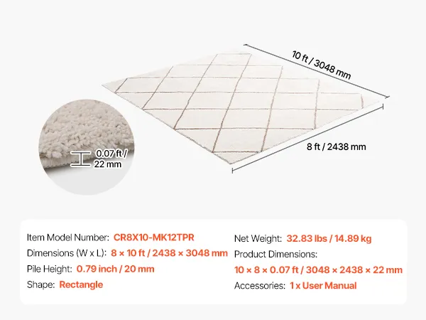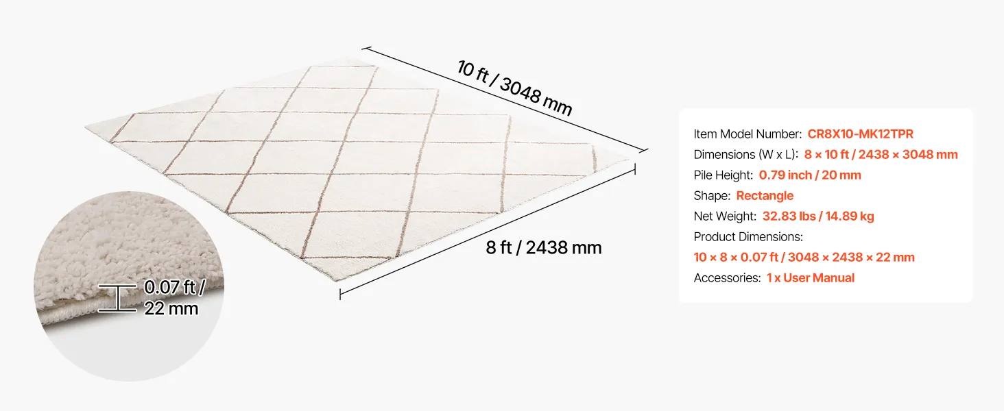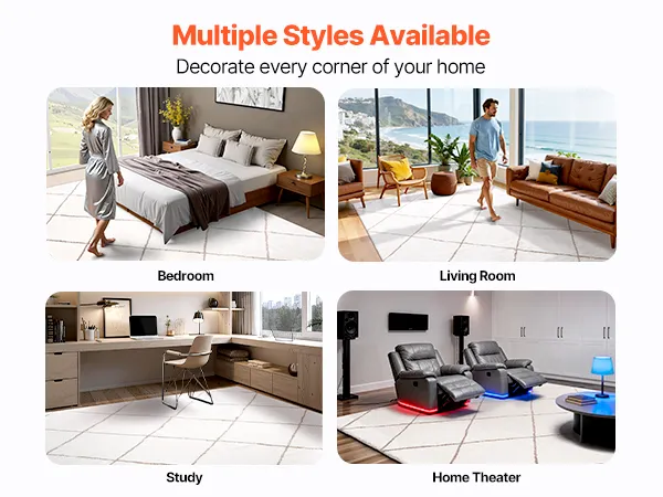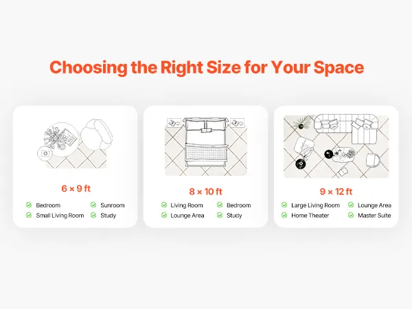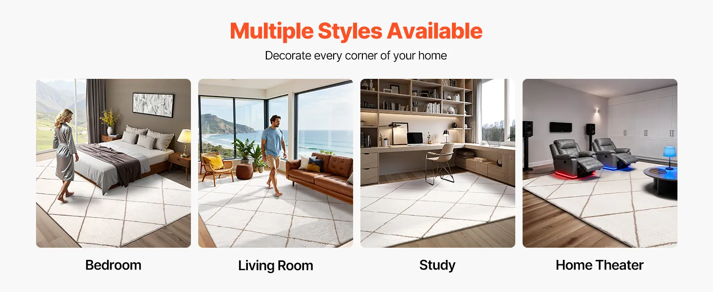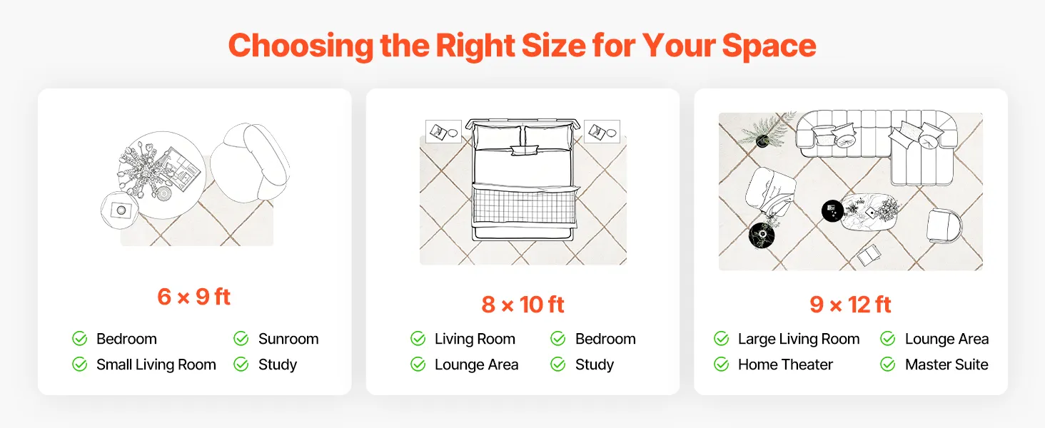 Sizing Made Simple: Choose the right fit for your space with options including 6 x 9ft / 1.83 x 2.74m for medium rooms, 8 x 10ft / 2.44 x 3.05m for large areas, and 9 x 12ft / 2.74 x 3.66m for extra-large settings. These choices let you match the rug size to your bedroom, living room, or study for comfort and style