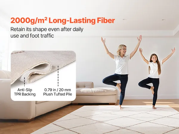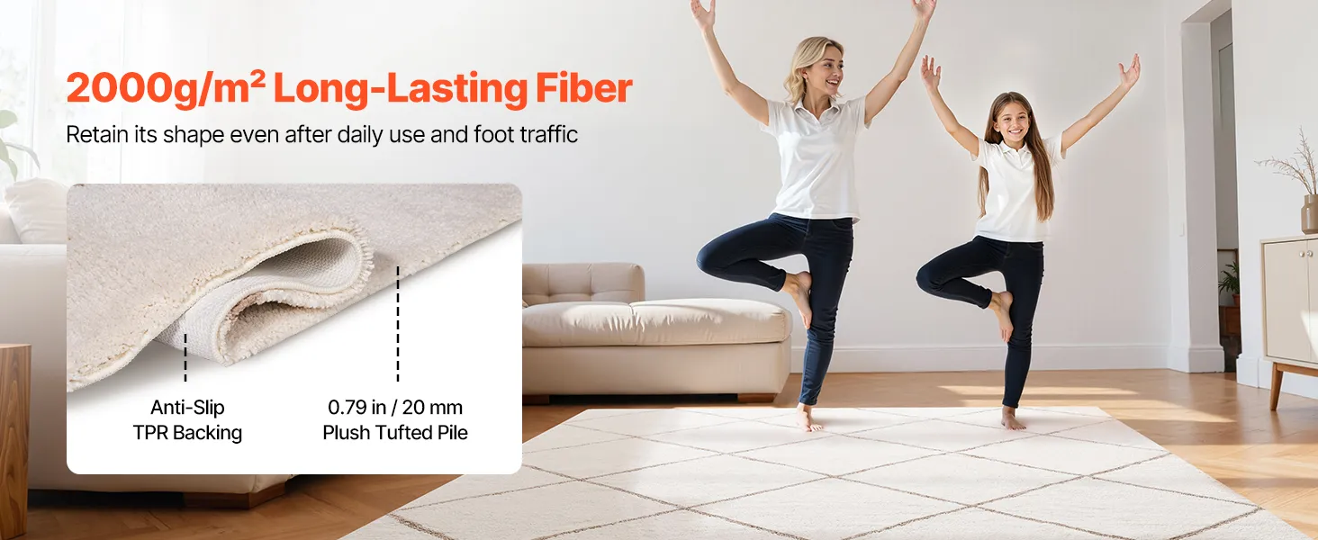 Strong Fiber Build: Crafted with thick, high-density fibers weighing 2000g/㎡, this carpet rug for living room stands up to heavy foot traffic without losing shape. Even under furniture, it avoids deep indentations, making it ideal for busy spaces like family rooms or living areas
