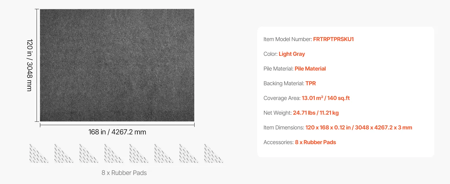 Non-Slip Carpet Pad: Our carpet pad is a pre-laying underpad for carpets, not a carpet. It can avoid shifting and slipping, while keeping hardwood floors from being scratched and damaged. Its 3.05 x 4.27 m size is ideal for an area of about 13.01 m²