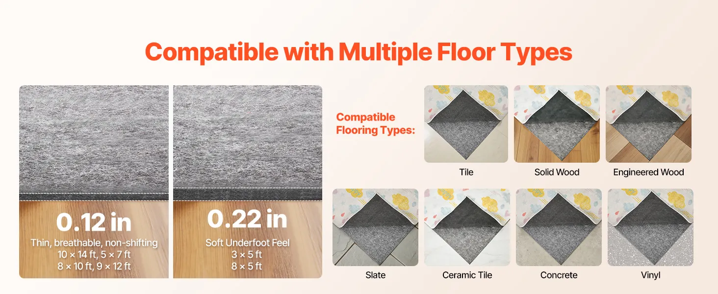 You can choose the matching felt rug pad size based on your carpet size to meet the needs of different usage scenes.