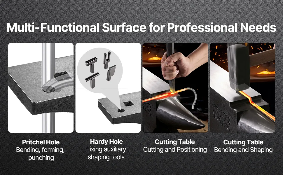 The precision-designed functional holes on the surface provide a smoother and more refined work experience, making it easier to shape and bend materials accurately. The cutting table of the blacksmith anvil provides a professional cutting and shaping experience.