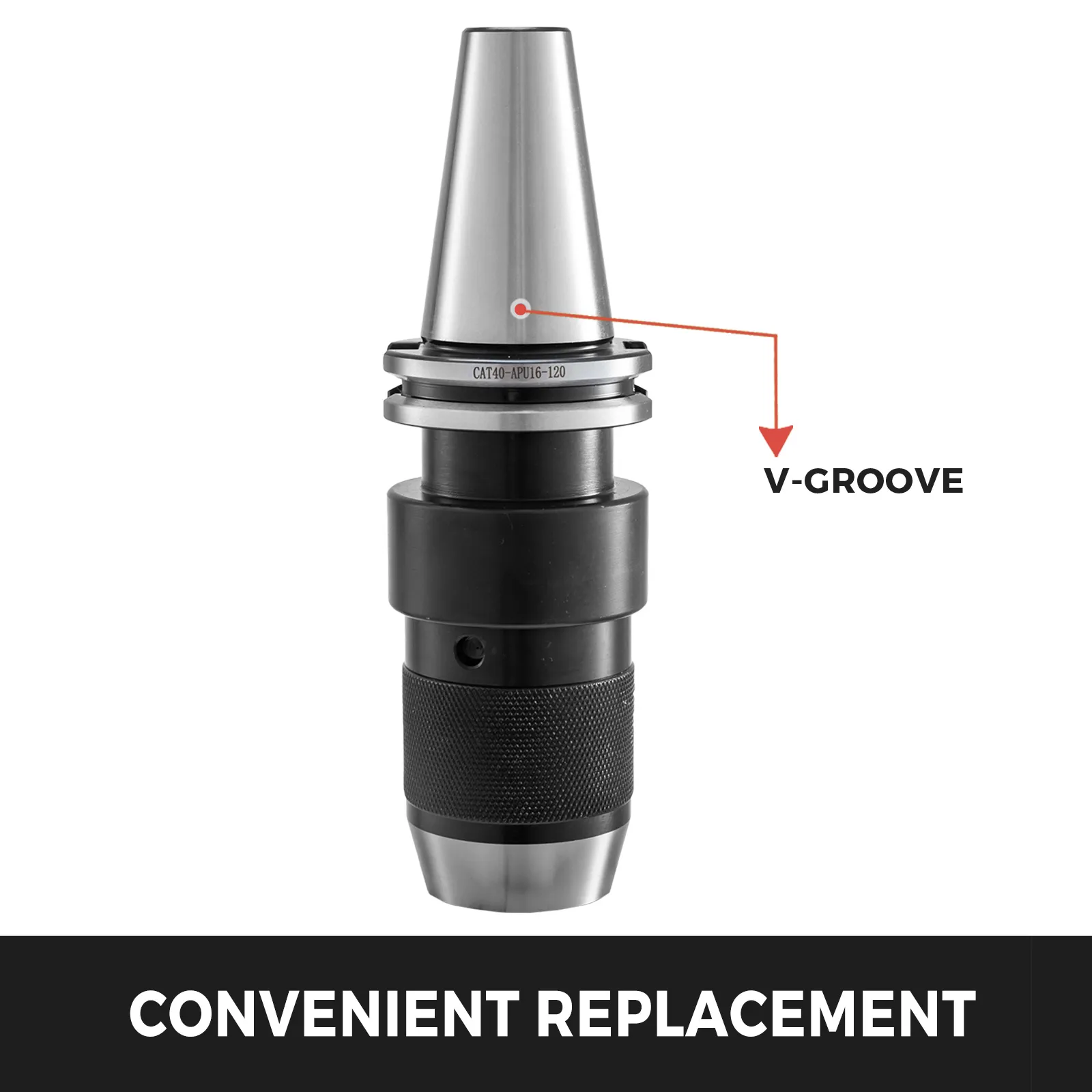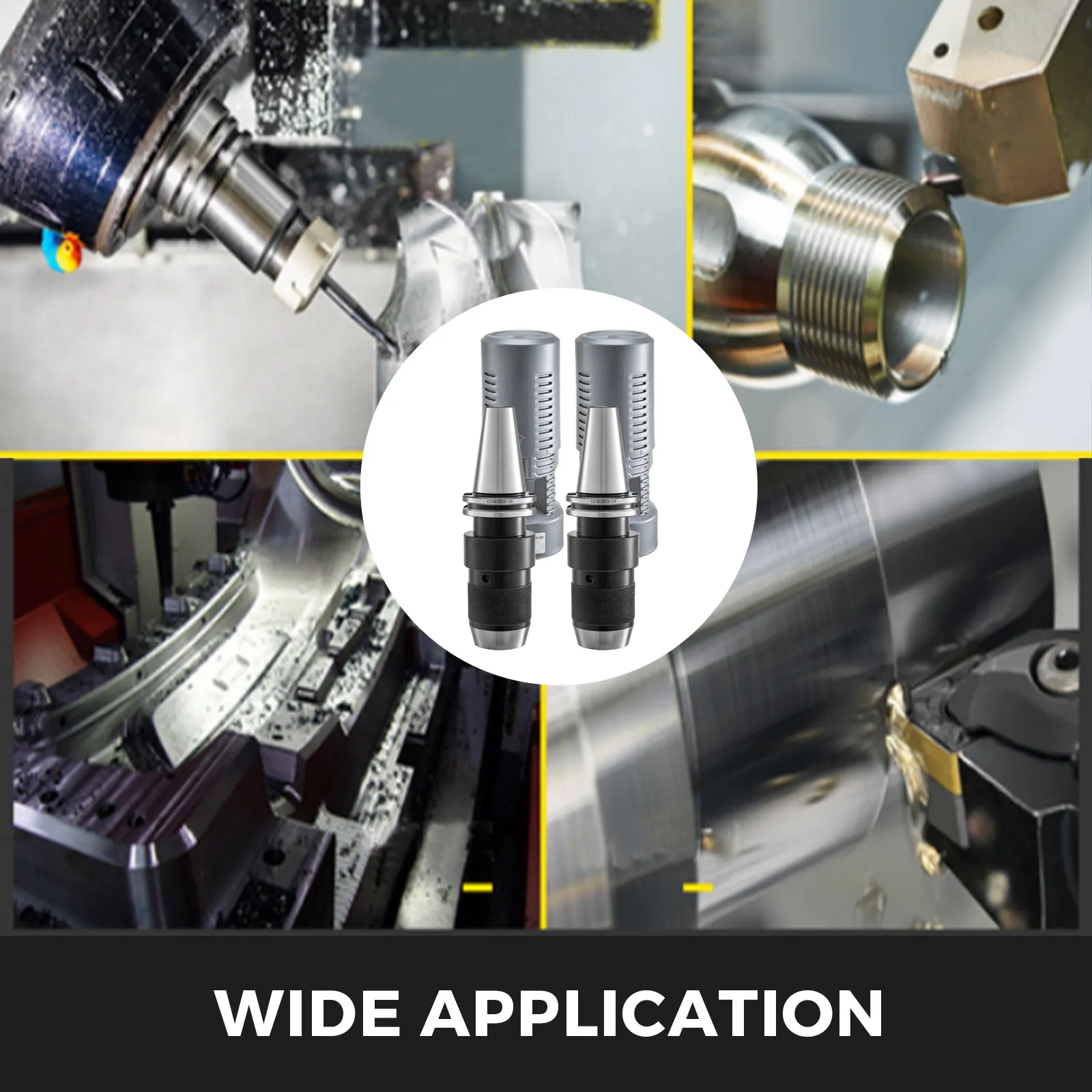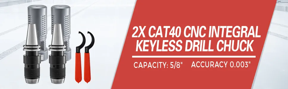 【EFFORTLESS TO OPERATE】- 2 CAT40 precision ball bearing keyless drill chucks, capacity: 5/8". Self-tightening key-less feature. Easy to use, safer than separate shank model.
