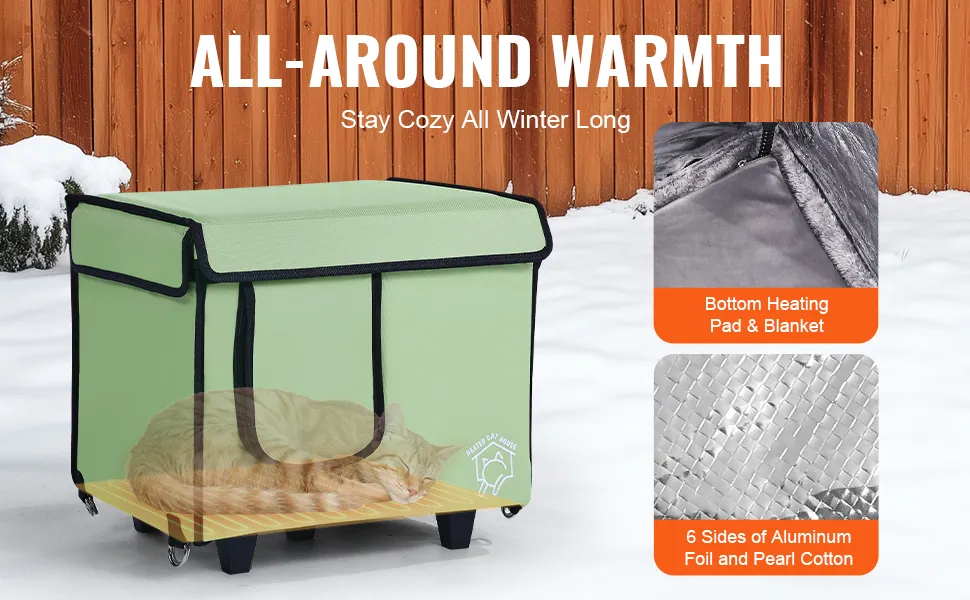 Powerful Insulation: The interior features heat-reflective materials like aluminum foil and pearl cotton, which effectively trap warmth inside the cat shelter. With a blanket provided, this combination ensures your cat's belly and other body parts remain cozy.