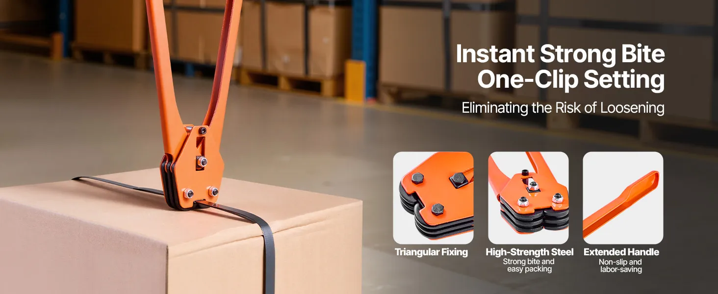 Crafted from upgraded hardened steel, the banding strapping kit features an extra-long handle designed for labor-saving lever operation to enhance strapping force. The sealer has strong gripping power, speeds up packaging and securing efficiency, and allows flexible, controllable operation.