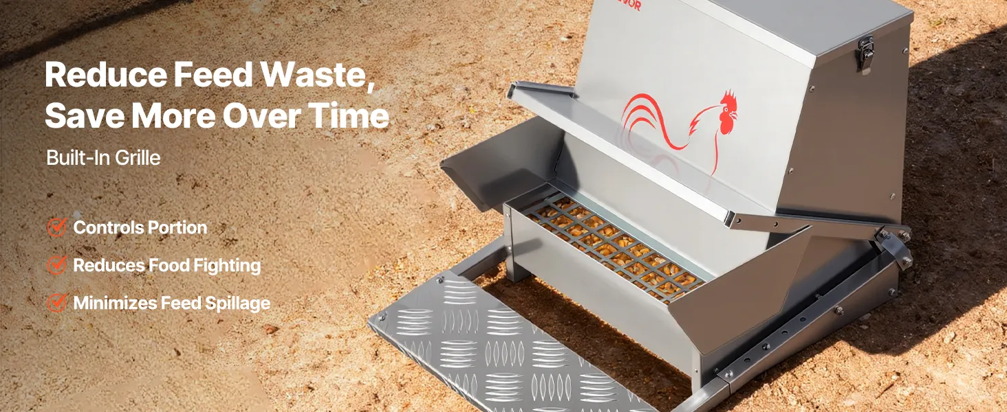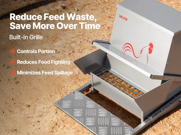 Cleaner Coop, Less Waste: Say goodbye to messy, scattered feed. This automatic poultry feeder features built-in grilles that minimize scattering, avoiding feed overflow and waste. Keep your coop cleaner and save on feeding costs