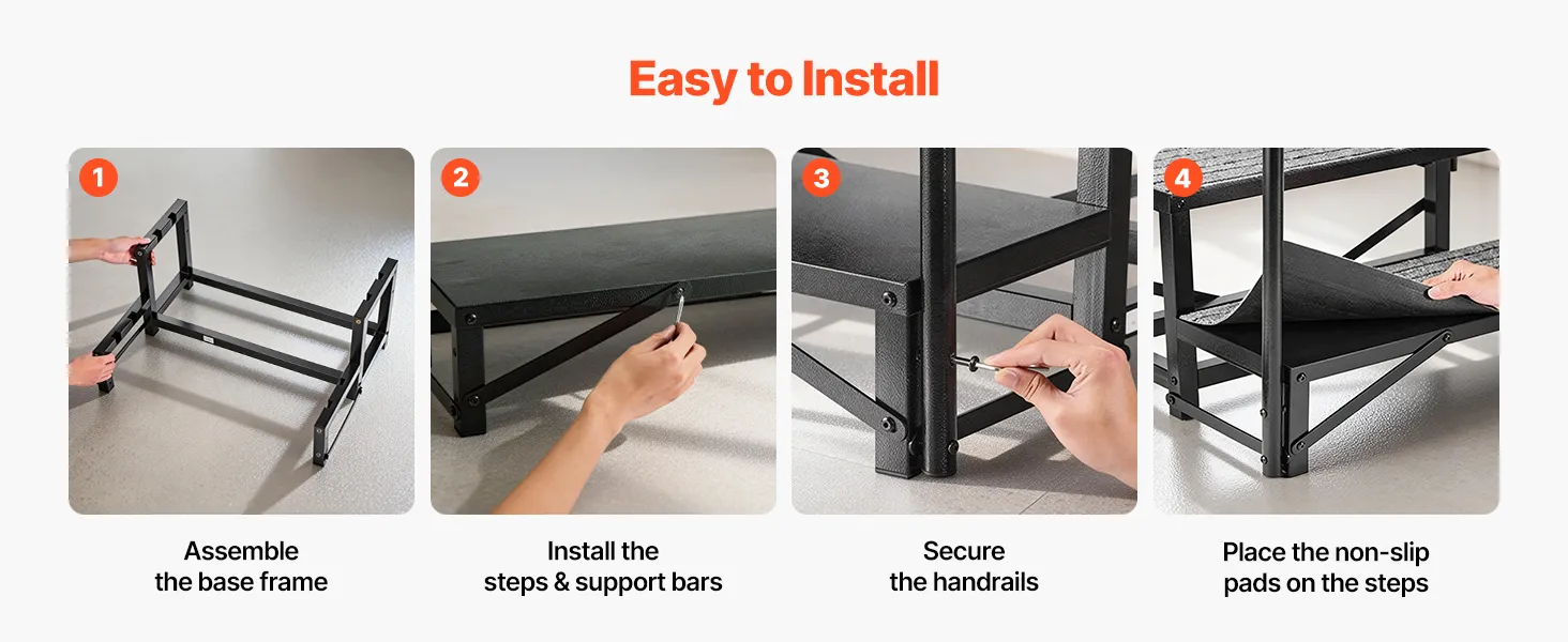 Built with sturdy materials and a reinforced structure, these steps support up to 660 lbs / 299.38 kg and can accommodate 3-4 people standing at the same time.