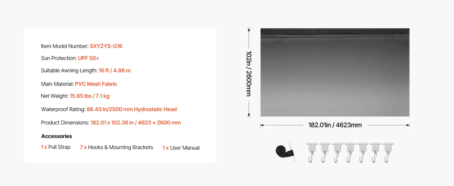 • UPF 50+ & Waterproof: This RV awning fabric replacement blocks 98% of harmful sunlight and withstands up to 98.43 in (2500 mm) hydrostatic head. It keeps your RV dry and cool in rain or intense sun while resisting dampness
