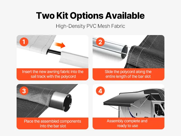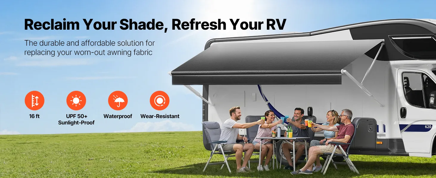 VEVOR RV Awning Fabric Replacement, 4.88 m (Fabric 4.6 m) 510g Heavy-Duty Weatherproof Vinyl Camper Awning Replacement, UPF50+ Protection Waterproof Outdoor Canopy for RV Motorhome Trailer, Black Fade VEVOR RV Awning Fabric Replacement, 4.88 m (Fabric 4.6 m) 510g Heavy-Duty Weatherproof Vinyl Camper Awning Replacement, UPF50+ Protection Waterproof Outdoor Canopy for RV Motorhome Trailer, Black Fade