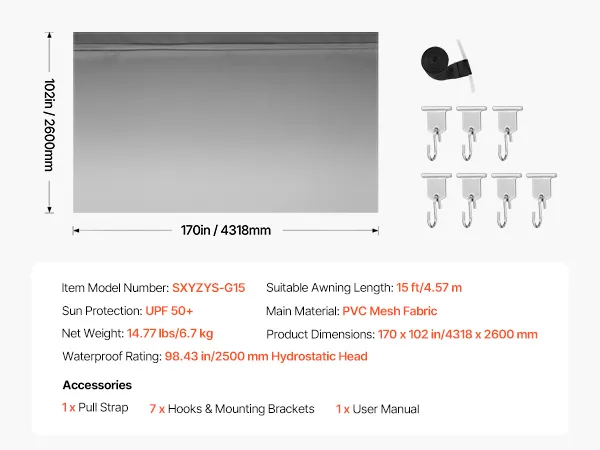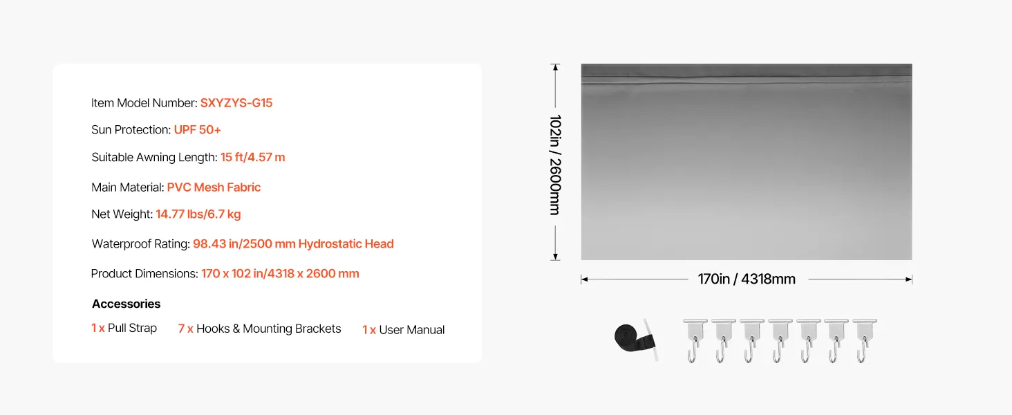 Complete Accessories: Our RV awning replacement fabric includes pull straps and brackets for easy setup without extra purchases, reinforcing support points for a secure, ready-to-use shaded space